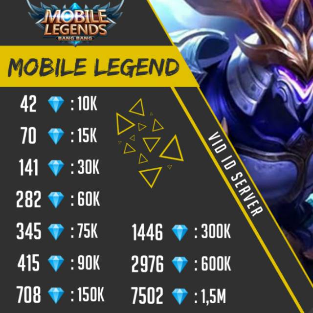 Pernah nggak sih kamu ngerasa tertarik untuk membeli konten eksklusif seperti hero dan skin premium di dalam game mobile legendsskin yang beragam ini biar hero kamu jadi kelihatan lebih kece lagi pas main. Diamonds ini dapat digunakan untuk beli hero skin dan season pass. Hanya butuh beberapa detik saja untuk beli diamond mobile legends. Top up mobile legends diamond in seconds.